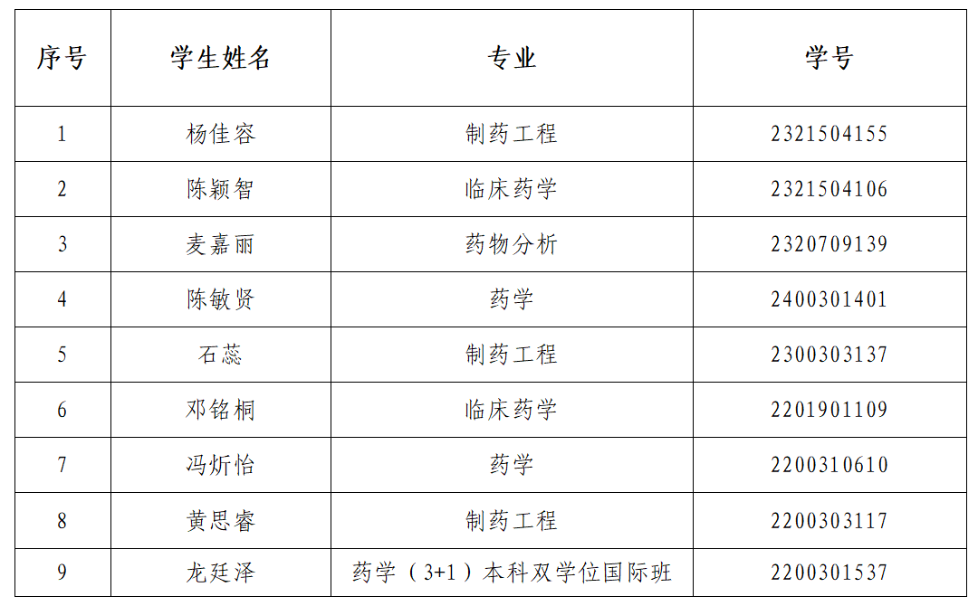 根据国家财政部、教育部和广东省教育厅助学中心的有关文件精神,现对我院2024-2025学年国家奖学金通过初审的学生名单予以公示。国家奖学金评选范围及条件可登录广东药科大学学生工作部网页查询。
